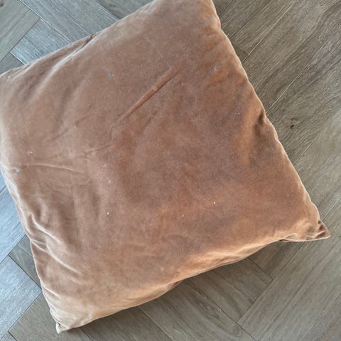 Grå stor pute selges, er som ny , bare stått til pynt, glidelås bak så trekket kan vaskes, røyke og dyrefritt hjem, kan sende med helthjem