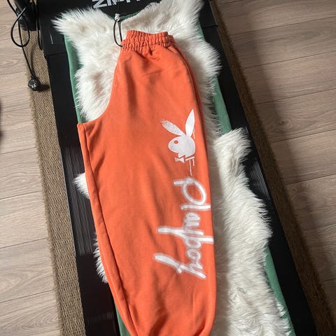 Da må jeg dessverre selge denne fine joggebuksen i hvit og beige, fordi den dessverre ble for lang for meg... Den heter «Playboy x Missguided Stone Tie Dye Print Oversized Joggers», så den passer nok en som bruker en S og muligens en liten M også.