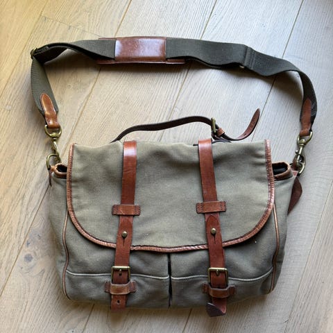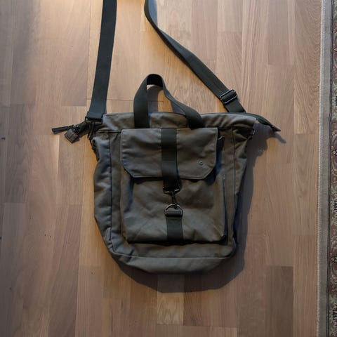 Flott, semsket, svært lite brukt Rabens skulderveske selges. Som ny. Mosegrønn med svart reim og svarte detaljer. To innerlommer, en med glidelås, en uten. En utvendig lomme på baksiden. Messing spenner. Veldig sporty og fin. Ny pris ca 3000 kr. Ca 34 x 31 cm Kan sendes mot at kjøper betaler porto