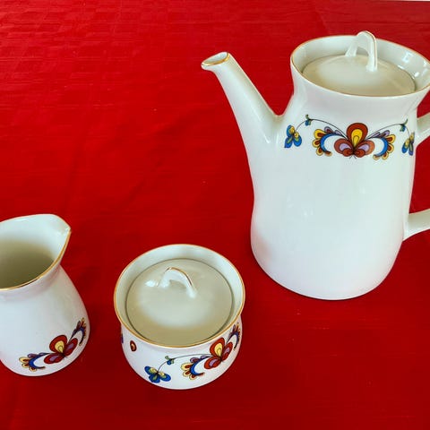 Porsgrund Kaffekanne 22 cm. Skål diameter 16 cm, H. 5,5 cm. Skål Diameter 6 cm. H. 5 cm.