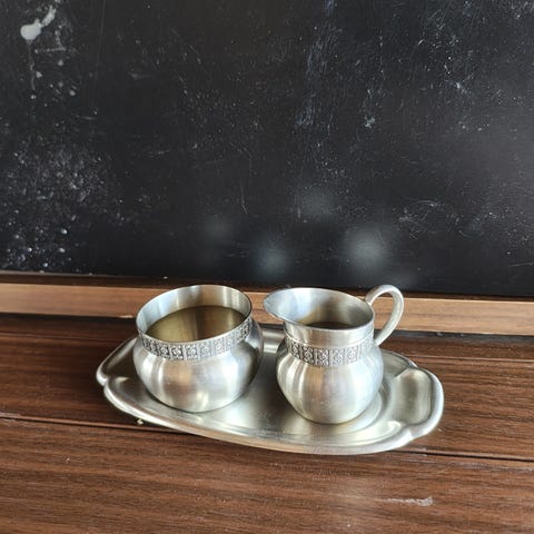 Fint retro fløtesett i tinn selges hbo kr 150,-