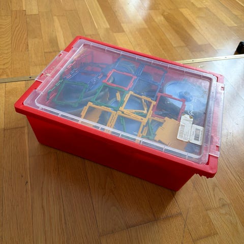 Lekeskrin til barn med skuffer og rom for oppbevaring av småting. Ble kjøpt sammen med bokser og utstyr til MyDough (lekeleire), så den passer til denslags. Mål er ca. lengde 33 cm, dybde 17 cm og høyde 16 cm. Kan hentes på Lambertseter.