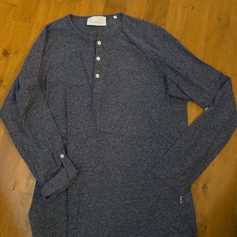 Genseren har krage og glidelås som lukking i halsen. Det er korte ermer. Merket på genseren er Mc Gordon og stoffet er i Viscose/polyester.