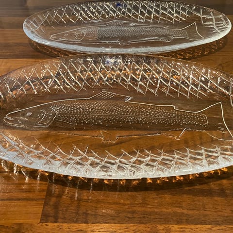 Ovalt glassfat med fiskemotiv Magnor Glassverk - 30 cm langt