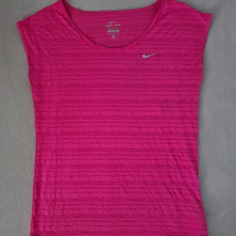Lite og pent brukt Nike t-skjorte selges da den bare tar plass i skapet mitt. Lett materiale (dri-fit) som passer godt til både hverdagsbruk og trening. Normal i størrelsen, med korte ermer. Passer altså både en XS/S/M avhengig av ønsket fit. Kan hentes/leveres i Hønefoss etter avtale. All annen frakt betales av deg som kjøper. Sender gjerne med helt hjem eller postnord etter ditt ønske. Fiks ferdig er også helt supert