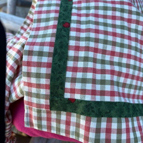 Tre flaskeforkler. Nydelig og forseggjort håndarbeid. Nyttige til flasker ang. drypp ved skjenking, og skaper en festlig stemning. Mine barnebarn elsker det, når de ser flasken kledd med forkle.