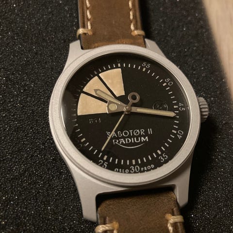 Helt ny klocka, allt är kvar på den skydds plast, plast krok för att sätt igång batteriet.
