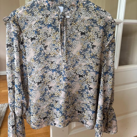 Ane Mone - 1 NY meget fin bluse i størrelse 38-M. Den er i 100% polyester. Bløtt og behagelig stoff. En nett og luftig bluse. Har noen små rysjer nederst på mansjetten. Blusen veier 140 gram. Se bilder av blusen med flere opplysninger. Nypris kr. 599,- selges 1/3 av prisen, kr. 185,- Blusen kan sendes, eller hentes her i Sandefjord, eller avtale henting i Tønsberg på Tolvsrød.