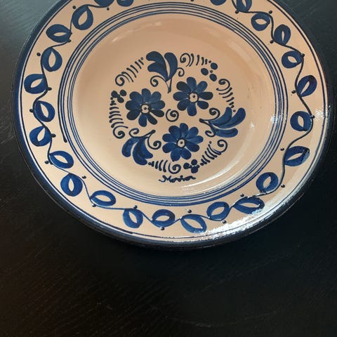 Håndlaget fat fra Ungarn. 25 cm i diameter.
