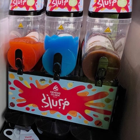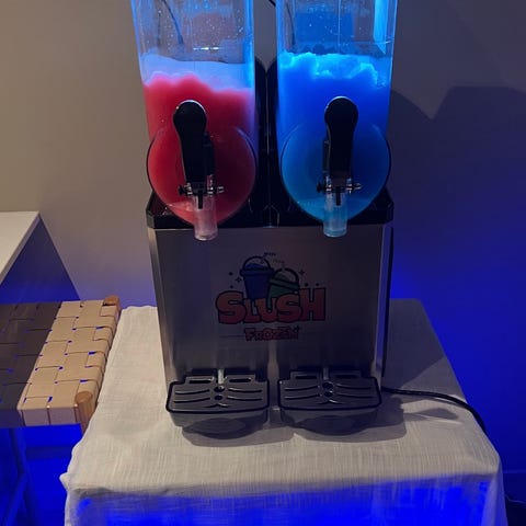 BrainCooler slushmaskin med inntil 3x10 liter kapasitet til leie. Dette er en sikker vinner for både store og små! Maskinen kan bruke ett, eller alle tre kammer samtidig. En meget populær maskin å ha i barnebursdag eller andre sammenkomster. Hvis du ønsker slush med alkohol kan det blandes vodka eller rom direkte i maskinen.