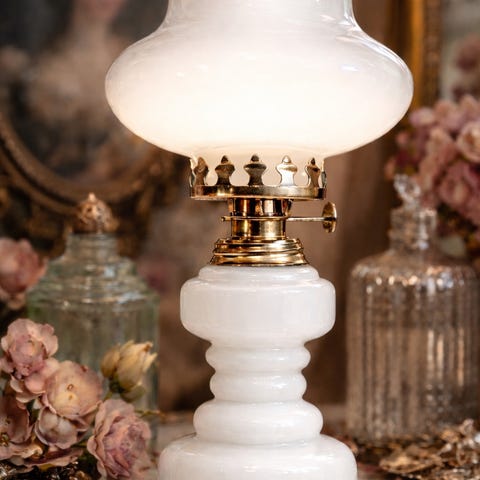 Ubeskrivelig vakker lampe med fine detaljer i porselen. 46 cm høyde