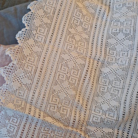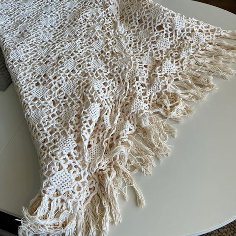 Ubrukt håndheklet sengeteppe/ duk. 1,80 x2,30m. Nydelig arbeid.