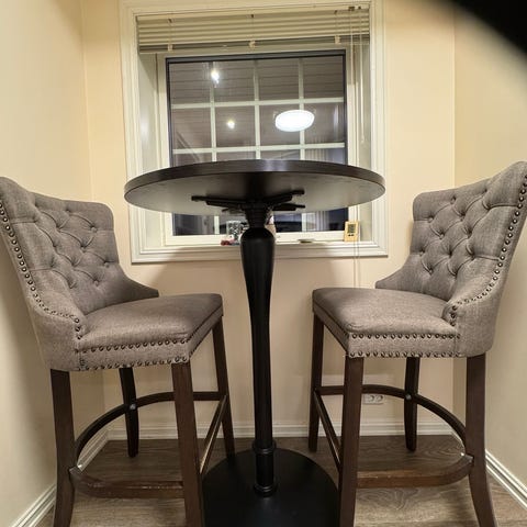 Pent rundt bord med glassplate selges 900,- før 3500,-
