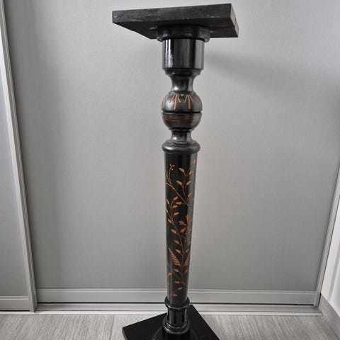 Selger min 1800 talls pidestall med original maling. Høyde 119 cm. Svart og detaljer med gull-maling.