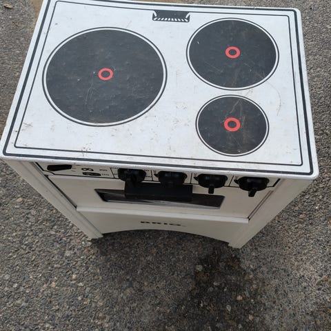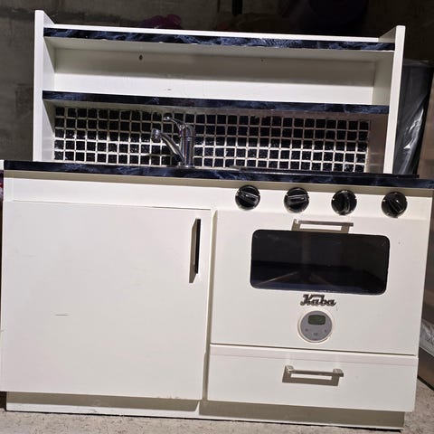 Ny leke komfyr. Laget i plast med papp bakplate. Med lyd og lys og mange deler til matlaging. Den jeg selger er flatpakket i uåpnet eske. Det er enkelt å sette sammen. Selges for 400,- Kan hentes eller sendes. Porto 140,- norgespakke med sporing. Kan og selge den som er ferdig montert og har vart lekt med 2-3 ganger, prisen er den samme, men man slipper å sette den sammen.