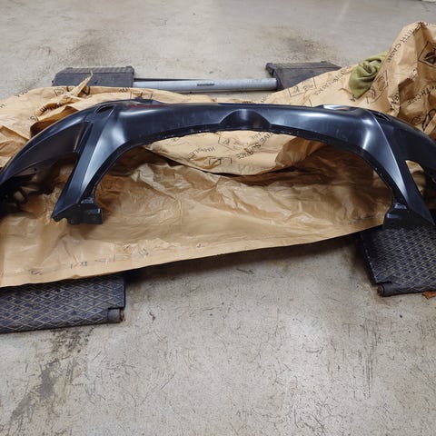 - Ble demontert fra bilen etter påkjørsel. Det ble en kun mindre skade på støtfangeren, som enkelt kan limes/rettes opp av nevekyndige.