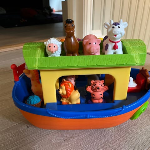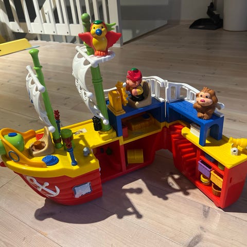FP bilferge med 3 biler, 1 livbåt og 5 figurer. Denne er fra 80 tallet.Må hentes i Porsgrunn