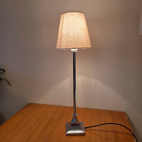 Selger fin hjemmelaget lampeskjerm med fjær. Laget i 2017