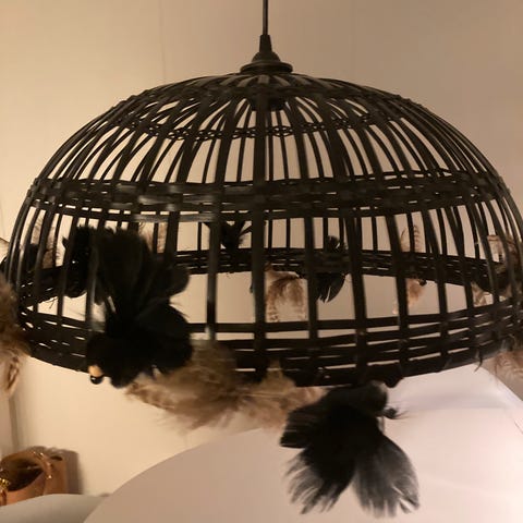 Pent brukt lampe med 3 spotter som gir godt lys og vifte med 3 hastigheter og om luft skal sirkulerer oppenfra og ned, eller nedenfra og opp. Kan velge om du vil ha hvit etter tre farge på vifteblad etter hvordan du monterer, bruksanvisning følge med. Enkel montering.