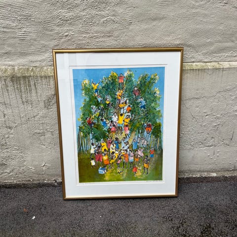 Bilde er 58cm bredt og 80cm høyt med ramme.