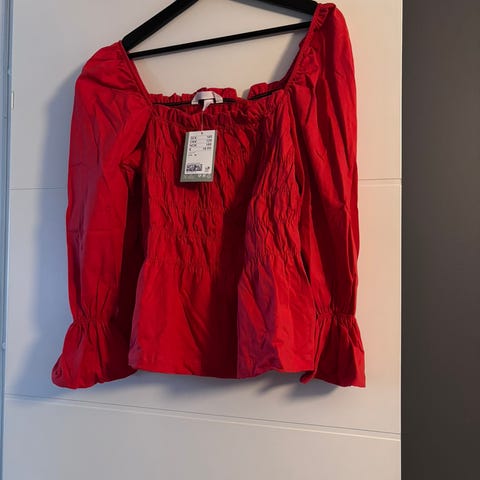 NY. 100% bomull bluse / topp. Hvit-Rød. H&M.