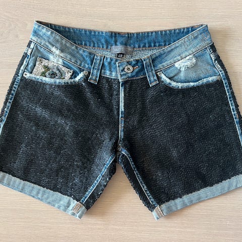 Ny jeansshorts med merkelapp fra HM, str 38. Svart med mønsteret. kr 75. Kan sendes mot frakt.