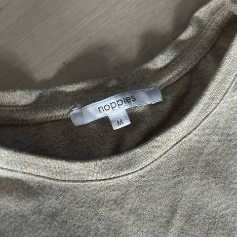En knelang ammekjole i myk trikot med V-hals, fastsydd omslagsfront og smal, elastisk søm i midjen med dekorativt knytebånd. Praktisk innertopp for enklere amming. Ufôret.