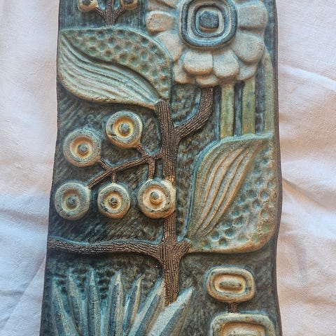 Morsomt veggoppheng fra 60tallet, 77 x53cm. Design Ulla Scheuer, Sverige. Trykk på bomull. Evnt.frakt i tillegg.