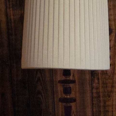 Lampeskjermen består av 2 lag: ytre lag av stoff, indre lag av plast.