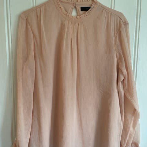 Lekker pudderrosa bluse med fine detaljer og stofftrukne knapper