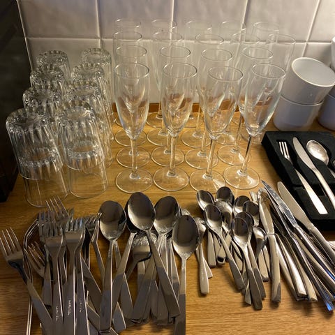 Skal du ha selskap, konfirmasjon, bryllup e.l og trenger servise, glass, kopper og div., så kan det leies av oss 😊 Det vi har av div er det bilder av, og antall står på bildene 😊
