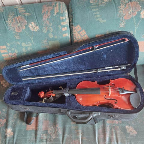 Fiolin uten bue selges. Den er ubetydelig brukt.