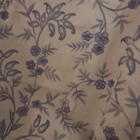 To gardinlengder (tak til gulv), én løper og seks spisebrikker.