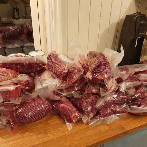 Selger hjortekjøtt. Hele og halve dyr, slaktet. Høsten 2026.