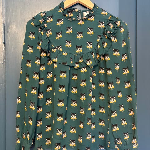Søtt gammelt sett med skjørt og bluse, blusen har skulderputer, er krøllete da jeg ikke har styrket det. Kan sendes dersom kjøper betaler frakt, hentes eller avtale møte for avlevering.