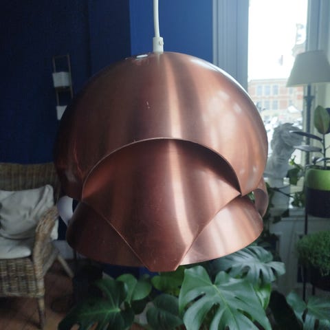 Lampen «Carolin», designet av Hans-Agne Jakobsson til salgs. Lampen er pent brukt og har ingen skjemmende bruksmerker. Diameter på skjermen er omtrent 45 cm.