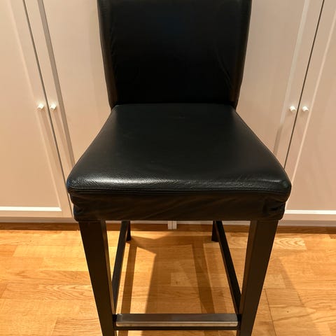Barstoler selges, imitert skinn (går jeg utifra), med slitte trekk, men disse kan sikkert kjøpes nye på IKEA, om man ikke liker rustikk stil 😃 de er utrolig gode å sitte på (ikke kjøpt på IKEA, men tror det er lignende str.). 2 stk for 500 kr eller bud.