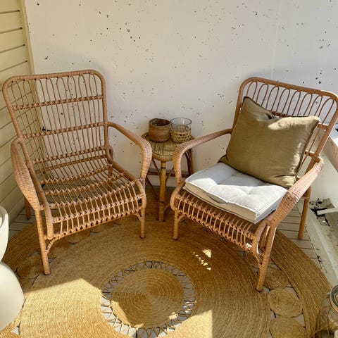 Har mer tekstil som kan følge med, hvis man ønsker å lage puter til flere stoler.
