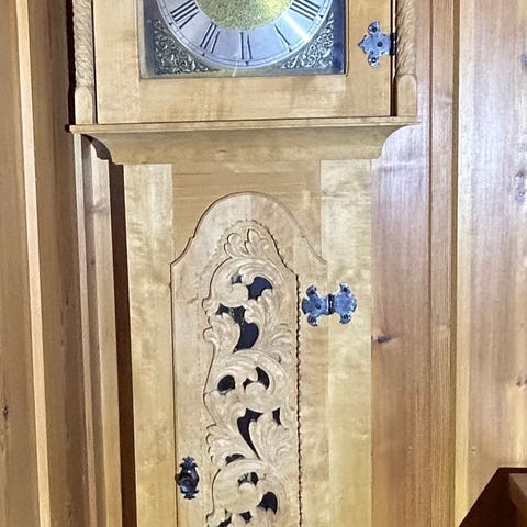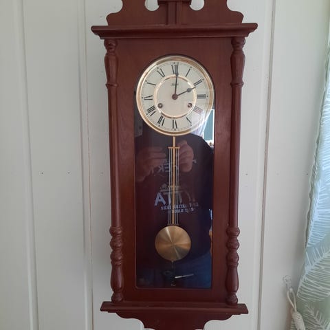 Mauthe klokke inni. Selger med unik skåret telefonsett, telefonhylle . Har sett ikke en andre i Norge.
