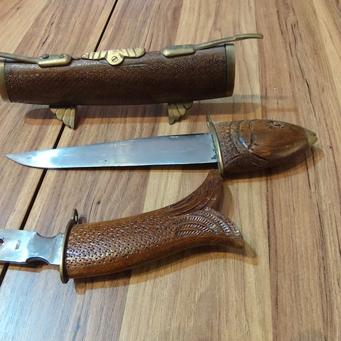 Denne gammle/retro kniven beskrives som antik, alder er ukjent, men den er virkelig gammel. Den er i god stand med bruksmerker og slitasje skader se bilder.