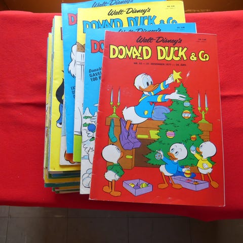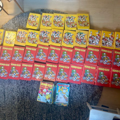 SELGER EN SAMLING DONALD DUCK & Co.SAMLINGEN BESTÅR AV 15(+3)PERMER.ÅRGANG 1979-1987+DELVIS PERM FRA 1963,NR.12-52.BLADENE FREMSTÅR BRUKT,MEN I OK STAND.EV.VEDLEGG FØLGER STORT SETT IKKE.EIERS NAVN OGSÅ PÅ NOEN BLADER.AV 9 ÅRGANGER KAN ENKELTE NR.(FÅ) MANGLE.MORSOM SAMLING FOR Å KUNNE LESE DONALD FRA DEN TIDEN,ARTIG PÅ HYTTA ELLER GUTTEROMMET F.EKS.SAMLINGEN BETEGNES VEL SOM BRUKSBLADER/LESTE BLADER.GRUNNET VEKT OG ANTALL MÅ BLADENE HENTES.ÅPEN FOR BUD/BUD MOTTAS/PRIS IKKE OPPGITT,SELGES SAMLET.GRUNNET STOR INTERESSE MÅ JEG BE OM AT HELE ANNONSETEKSTEN LESES.