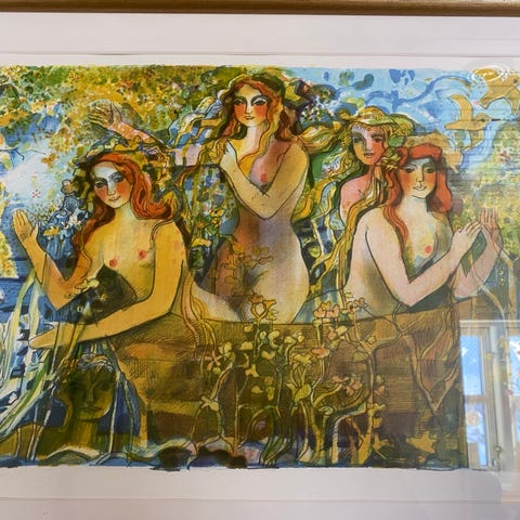 Unikt bilde på lin/canvas lerret og ett vakkert smykke på veggen .
