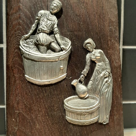Håndlaget på treplate. Koselig motiv og pent utført. Mid century modern. Perfekt til å ha over en teak sjenk