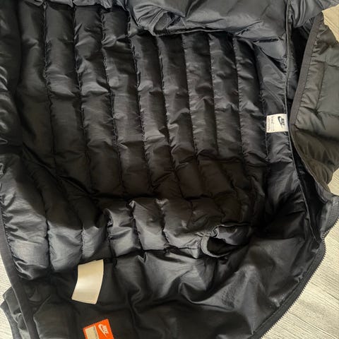 Brukt,svart veldig lit brukt og med lue.Størelse L