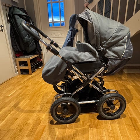 Brukt på 2 barn som 2. vogn og sove vogn i bhg. Liggedelen er lite brukt og fremstår som ny.