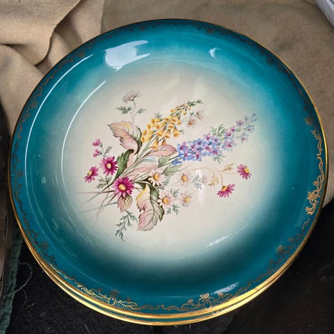 Sender en enkel og søt tallerken med blomsterdekor på som mønster. Diameter: 20 cm.