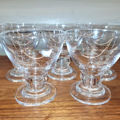 5 stk vinglass fra svenske Kolmården Design. Håndlagede. Meget dekorative. Selges samlet. Høyde ca 20, diameter ca 8 cm.