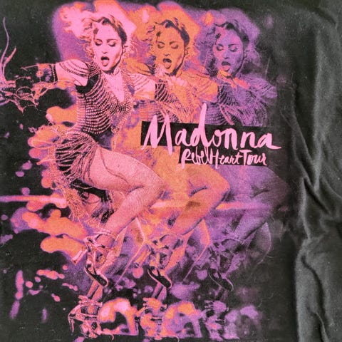 Originale Madonna-buttons fra Confessions Tour - kjøpt på konsert i Paris i 2006.