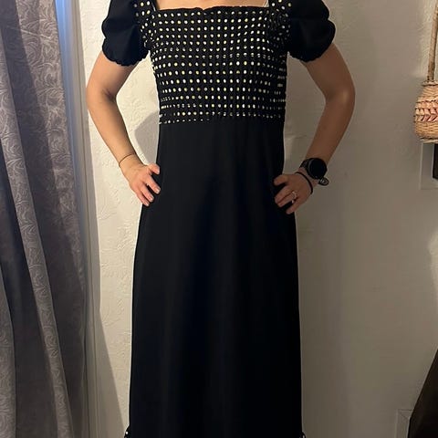 Se bilder for mål, alle er uten flekker eller skader. To av de er ubrukte. Silkekjolen er i str XS, den grønne med prikker er i str S og den sorte er i str 10 som tilsvarer S. Spør om du lurer på noe. Jeg sender. Pris står på bilde.