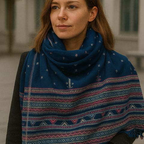 Indisk sjal i 100% bomull. Det har mange bruksområder. Helt ubrukt og som nytt.